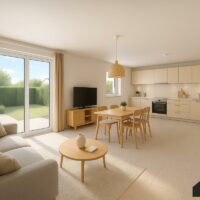 Cette maison de plain pied, spacieuse et lumineuse, comprend 3 chambres, une salle de bain moderne entièrement équipée, et un vaste séjour ouvert sur la cuisine, avec une grande baie vitrée pour accéder à votre terrasse et jardin.